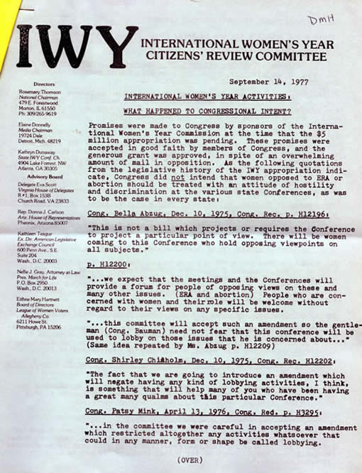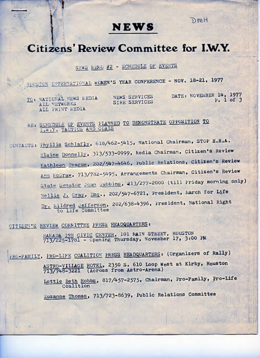 DMH Spotlight - Files of Diana Mara Henry include ephemera of the Citizen's Review Committee against IWY, Houston, 1977 Back