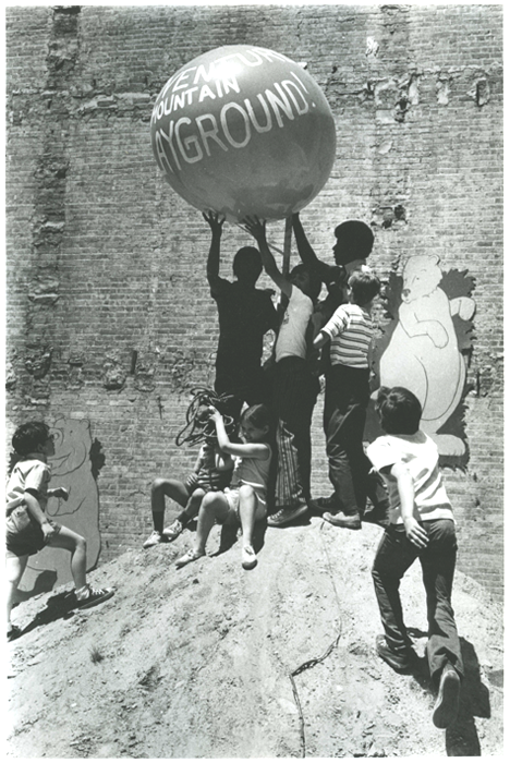 These are all from the photographs made for Lenox Hill Neighborhood Association in 1971; the playground was named Adventure Mountain Playground as shown here, in honor of the pile of sand.