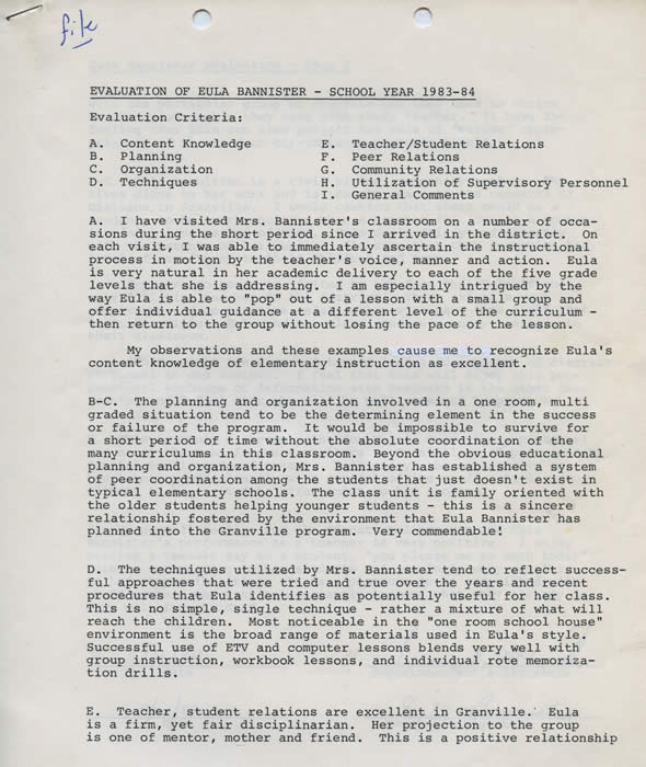 Thank you, Eula! Please email us with your suggestions for an archive for this precious legacy, a collection about 1 and a half feet of shelf space and encapsulating a whole lifetime of rural schoolteaching....Or to be in touch with Eula directly. I estimate that there are at least three dozen articles in her files about her teaching and the schools where she taught, as well as book and magazine stories about her teaching with her photograph. There are maybe three long typed scholarly interviews, her teaching evaluations and contracts , her communications to students and parents, and the whole archive is about a foot of documentation. I took a couple of cell phone pictures of her standing in front of a display of ceramic figurines of herself, her students, and her schoolhouse that was done by an admiring parent, and also with the photo of three generations of her family at the Hancock Branch one-room school where she also taught and attended for eight years.