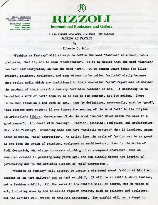 First page of the four-page press release by the notorious Robert C. Polo, profiled by DOminick Dunne in Vanity Fair.
