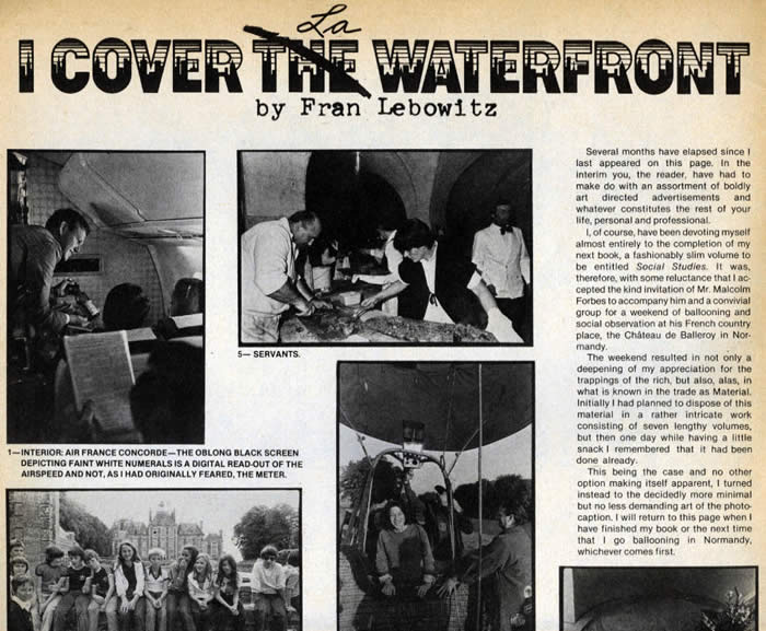 DMH Spotlight -Photographing at Malcolm Forbes Balloon meets, Chateau de Balleroy. Andy Warhol's Interview magazine article by Fran Lebowitz and Diana Mara Henry Back