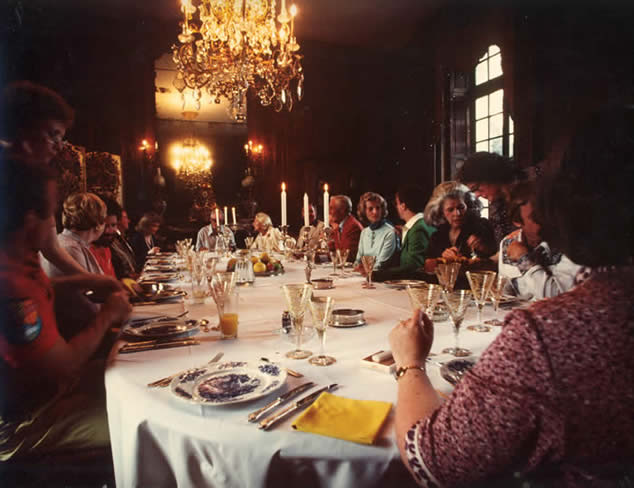 Photograph of DMh at work by Thomas Lee Jones, Special Projects Director for Forbes. Now see his website, Orange and Magenta, with a 2012 portfolio he chose of his favorite photographs by Diana Mara Henry.In the photograph below, Diana has gotten up to set up her tripod behind her place setting. Malcom is at the other end, Thomas Lee Jones across in green.