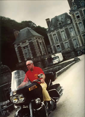 Malcolm Forbes' Chateau de Balleroy and himself on a Harley
