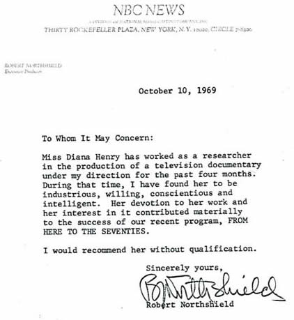 After graduation, researched the medical segment of “From Here to the Seventies,” NBC News documentary for the turn of the decade. Life is tough for coeds fresh out of college in 1969. The only advancement for women at NBC was for those who slept their way up or went to Vietnam.