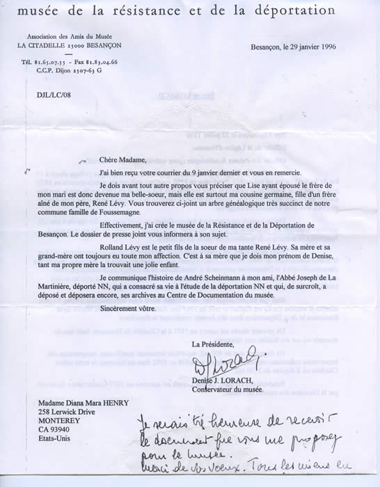 Denise Lorach, talented and generous founder of the remarkable Museum of the Resistance and the Deportation in Besançon, and a relative:
