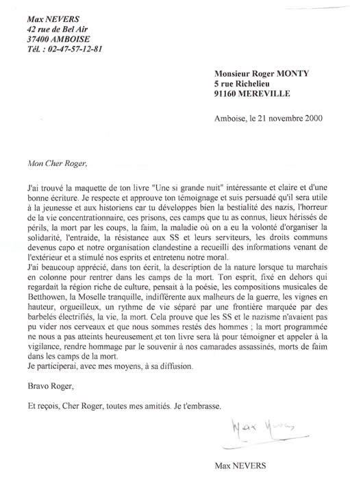 “Puis ça a été le départ pour Natzweiler-Struthof. Nous étions une cinquantaine dans un wagon cellulaire parti de la gare de l’Est et accroché au Paris-Berlin. Personne ne s’attendait à ce qui allait nous tomber sur la tête. Nous dépendions tous du décret de Hitler et Keitel, NN, Nacht und Nebel (1) : nous devions disparaître. A Natzweiler, nous sommes descendus de la voiture cellulaire en plein hiver, entourés de SS et de leurs chiens-loups. Arrivés dans ce camp garni d’oriflammes avec sigles SS et croix gammées. La neige, le gel, le froid, les kapos, tous des droits communs…” Roger, matricule 6992 du Konzentrationslager Natzweiler, n’a que 19 ans et demi. “J’ai rapidement réfléchi : il faut s’organiser, sinon on va tous mourir. Est-ce que j’en pensais un traître mot ? Non, sans doute, mais il fallait s’organiser, être solidaires. Là, tu es l’homme abandonné, sans rien ni personne pour t’aider. Nous étions sous la tutelle des SS. Mon seul atout : je parlais allemand.” Avant d’être transféré au camp de Gross-Rosen, Roger Monty et ses compagnons iront creuser dans le tunnel de Kochem, en Rhénanie-Palatinat. Dans ce kommando (1), beaucoup moururent de faiblesse, des coups, de blessures non soignées, de maladies… Dans son livre, Une si grande nuit (2), il raconte l’élan de solidarité qui accueillit à Gross-Rosen l’arrivée des rescapés de Kochem.
