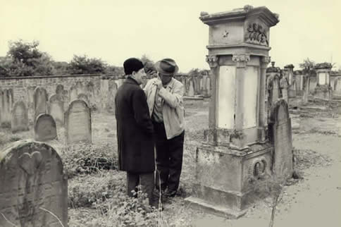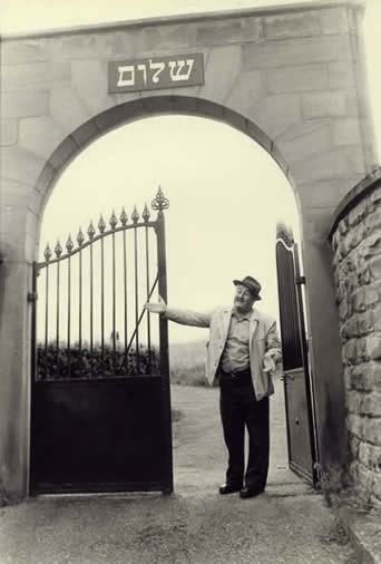 Roger Weil, at the gates of the graveyard in Hochfelden, left untouched during World War II.
