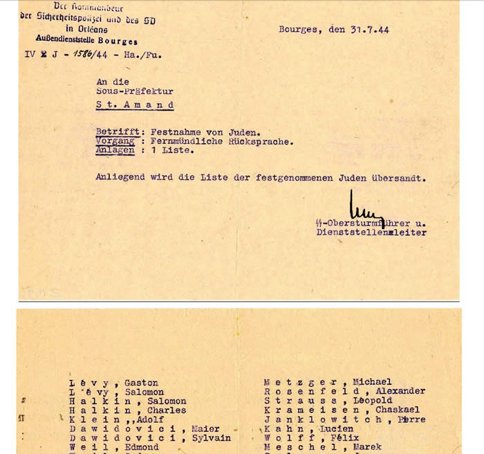 Enfin, le grand-père, Brunschwig Armand, né le 2/4/1902 à Loerrach (ou Neuf Brisach, in CDJC ), était précipité vivant avec 35 autres juifs (dont un couple de ma famille, Levy Salomon et Meis Mina d'Ingwiller) près de St Amand Montron (18200 = Cher) dans les puits de Guerry par la Milice française et la Police allemande !! C'était en Juillet 44!!