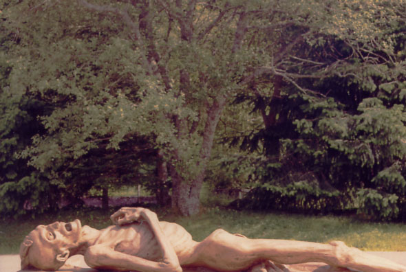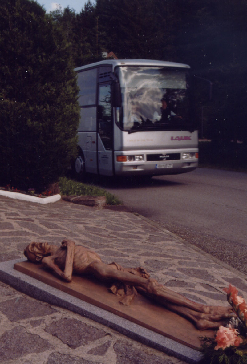 The bus parks at the Konzentrationslager Natzweiler (KLNa) and a statue is there. Photo and text Copyright Diana Mara Henry.