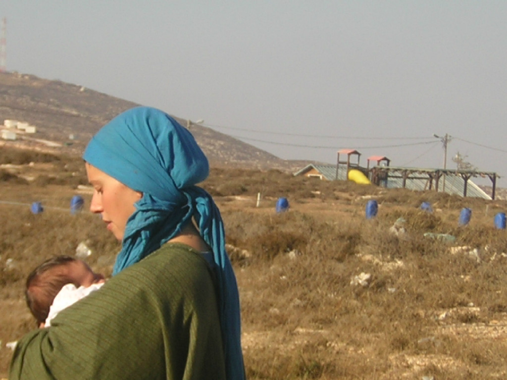 Here's one of those "setlers" you so revile ( see all the beautiful land they are "occupying?") Mother and child at Adei Ad, homeland of the Jewish people.
